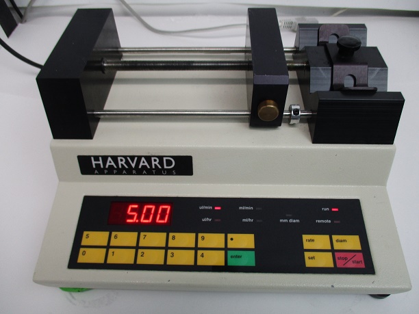 cross sectional area of the syringe to be used and calibrates the flow rate for that