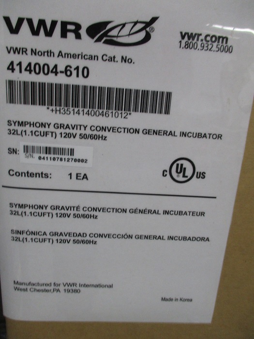 VWR SYMPHONY Gravity Convection Incubator Part # 414004-610